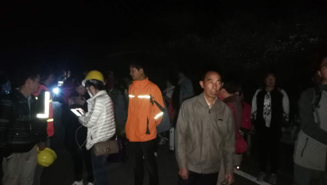 在等待过程中,天色渐晚,也越来越冷。看着孩子和大人们冷得发抖,崔阳和彭师傅冒着头顶随时有石块落下的危险,也不顾游客们的阻拦,一趟一趟地跑回车上帮游客们拿来行李,大家很感动和不舍,都很感谢崔导和彭师傅。