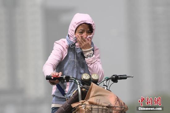 5月4日,山西太原空气质量达到严重污染级别,民众在沙尘天气中出行。武俊杰 摄