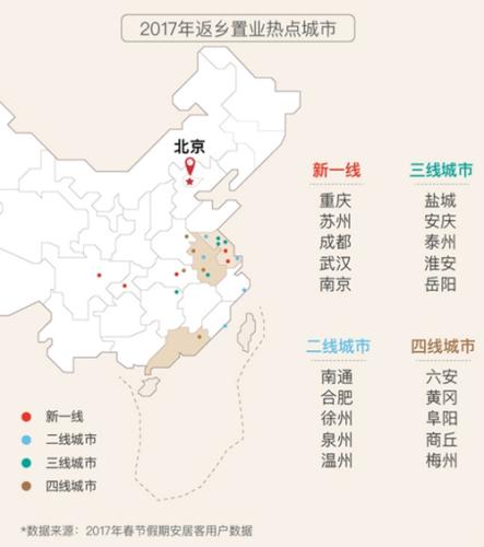安居客《返乡置业报告(2017-2018)》中的2017年返乡置业热点城市。