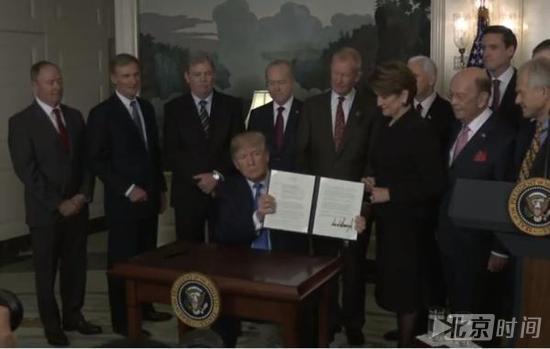 美国总统特朗普在白宫正式签署对华贸易备忘录