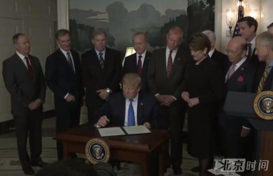 特朗普边签署贸易备忘录边说,“这只是开始(This is the first of many)。”