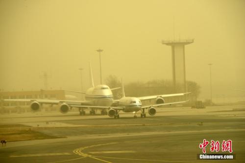 3月28日,北京首都国际机场沙尘天气笼罩。中新社记者 孙自法 摄