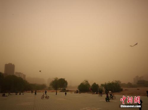 4月4日,大风沙尘天气席卷甘肃兰州,笼罩在一片漫天黄沙中。南如卓玛 摄